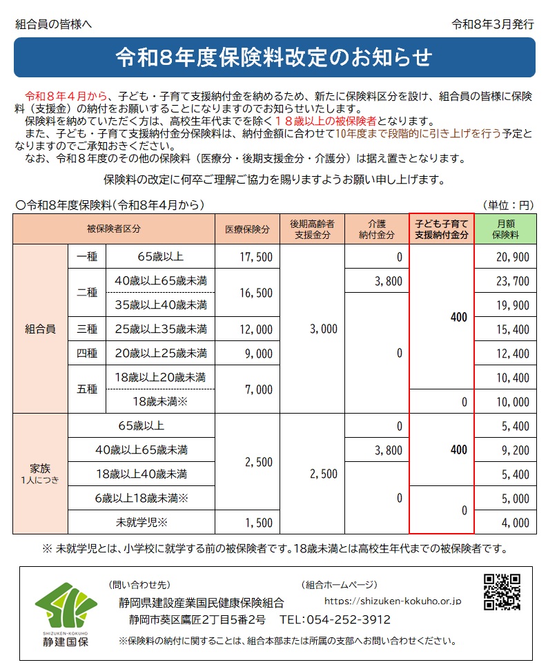また、第110回通常組合会の承認より、令和8年度の保険料が以下に決定しました。